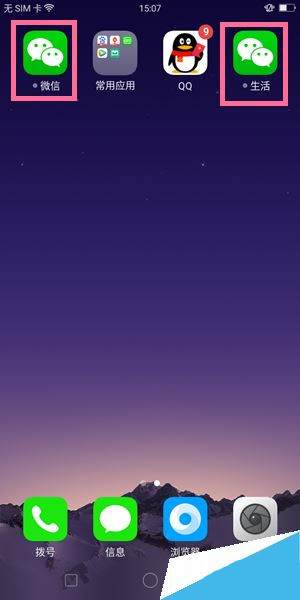5.就可以在桌面看到2个微信图标,同时使用2个账号咯,再也不用担心会发错消息咯。