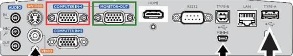 例:视频信号源通过VGA线与投影机的“Computerin-1”接口连接(如下图红框),