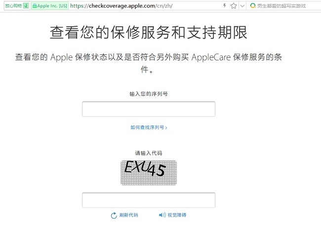 接下来在打开的保修服务和支持期限(序列号)查询工具中,输入您iPhone X的序列号进行查询,并输入提示验证码,完成后点击底部的「查询」,如图所示。