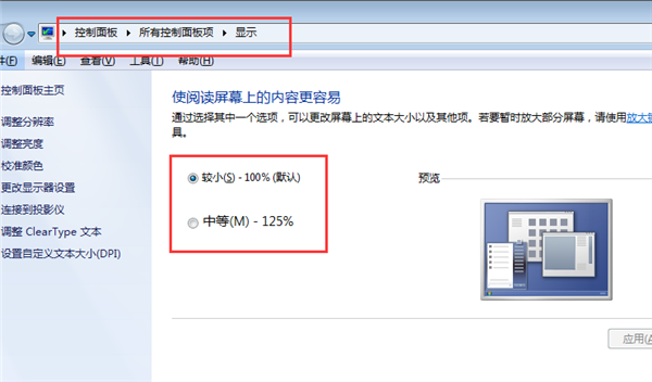 1.先在电脑上进入控制面板,在“显示”里面,试着切换一下大小;