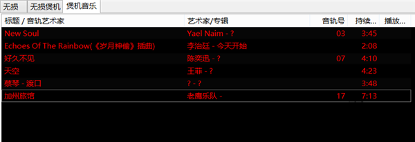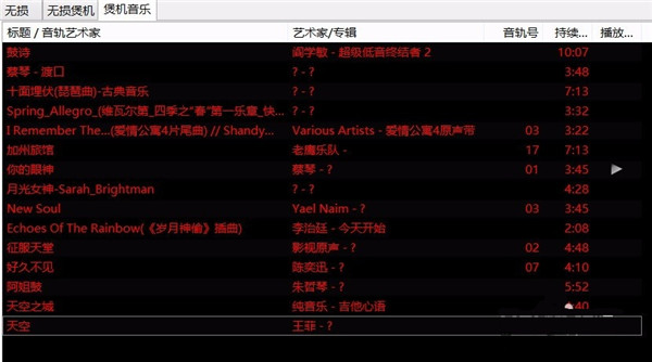 5、完成步骤4后,调大音量为4/5,再加入煲机音乐中一些自己觉得好听的曲目,歌曲顺序任意,李娜的《青藏高原》和腾格尔的《天堂》这个步骤中也不建议加入。