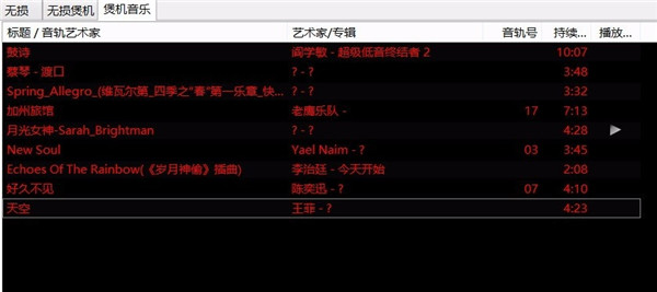 煲机音乐推荐先来说说煲机怎么选择音乐,首先,音乐格式要使用无损格式;其次,使用的音乐低、中、高频范围都要覆盖到;最后,使用的音乐乐器、人声范围要广(忌用电子乐和摇滚乐)。