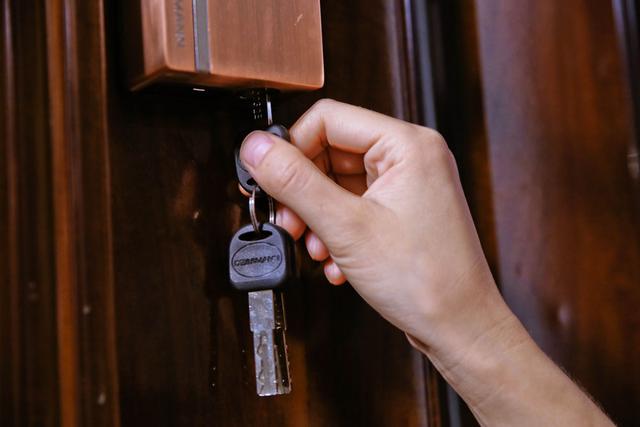 当然,对于传统的钥匙开锁并没有什么炫酷的悬念,不过对于隐藏在底部的钥匙孔确实不易被外人所轻易察觉。而钥匙的存在也仅限于小嘀锁既没有电,也忘带移动电源时的不时之需,并不是用来反锁房门的哦。