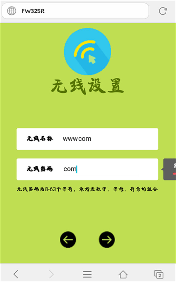 接下来就是无线设置,填写wifi名称和wifi密码。