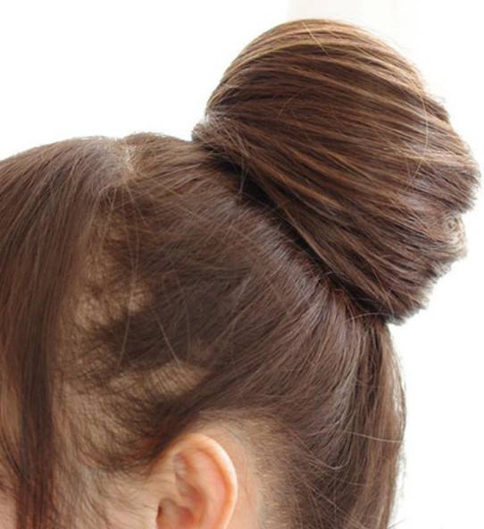 花苞头步骤三:在缠头发的同时,用梳子倒梳打毛处理,显得发型更加的轻盈,再慢慢的插进发圈中。