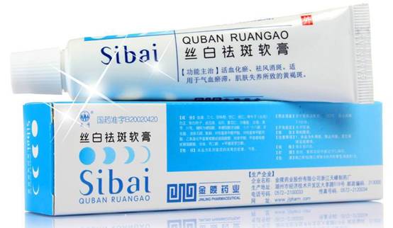 丝白祛斑软膏涂于面部及患处,一日2次,配合按摩3~5分钟。它的主要成分有15种,血竭、三七、当归、桃仁为君药:活血化瘀;川芎、杏仁、丝瓜络为臣药:通络祛风、平气解毒;白蔹、白芷、白附子、白僵蚕为佐药:祛风邪、收敛生肌、清热消炎;黄芩、珍珠、薏苡仁、牵牛子为使药:清热燥湿、润肤白面、解毒防晒。
