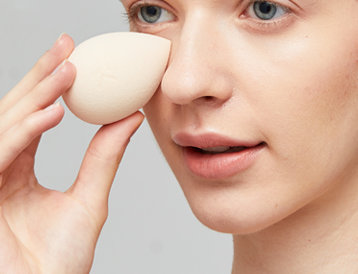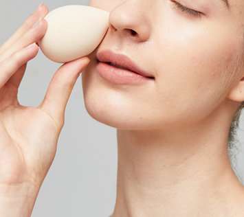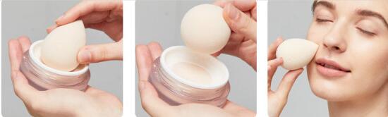 Step4:用粉扑轻轻地拍打在脸部,注意要均匀上粉,上散粉定妆,针对T字区擦拭即可,并使用余粉带过双颊达到提亮的效果。