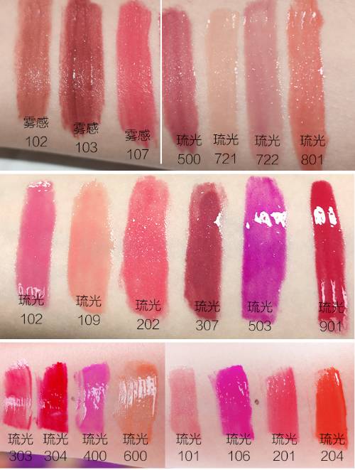 这一系列的唇釉是欧莱雅纷泽琉光奢润唇釉,七只分别是102、202、204、300、303、306和307。其实这个欧莱雅这个系列的唇釉是买了九支的,只不过一支被人看上拿走了,一支后面要试色的时候找不到了,所以上嘴就只拍了7个颜色。至于首图的九张图,那是为了凑足9图放了两张202,欧莱雅这一系列的唇釉是真的开挂了,都很好看。