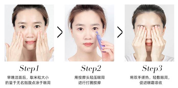 平时我们在擦眼霜的时候,用量一次大概两颗绿豆大小的量就够了,一边一颗。不要以为越多越好,涂多了不容易吸收反而会长脂肪粒。