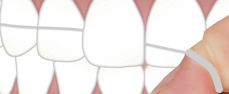 3、牙线固定好后,把压线贴合牙齿表面,上下牵拉摩擦牙齿表面,进行清理。