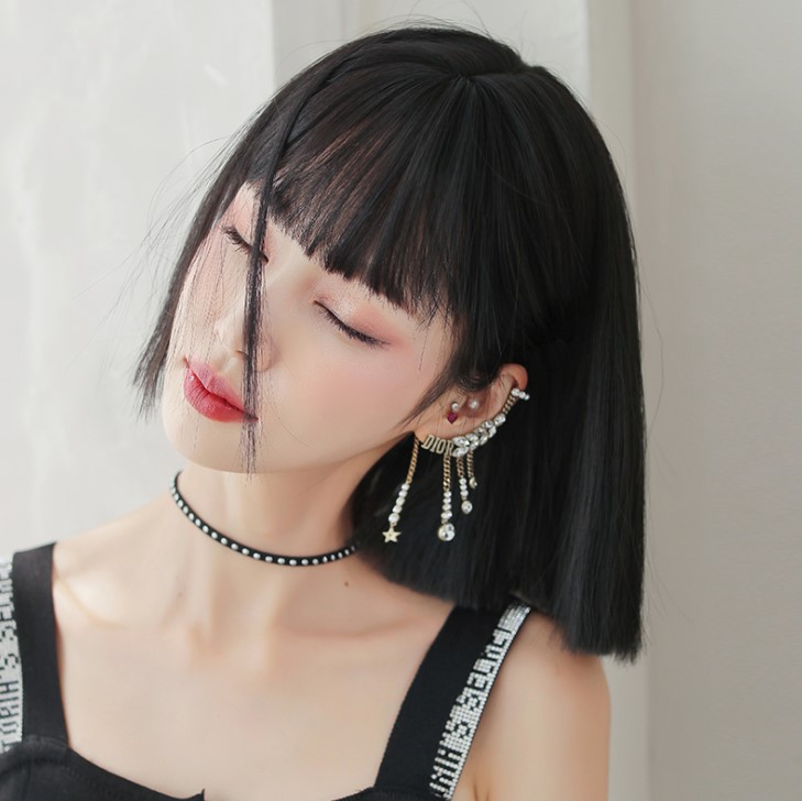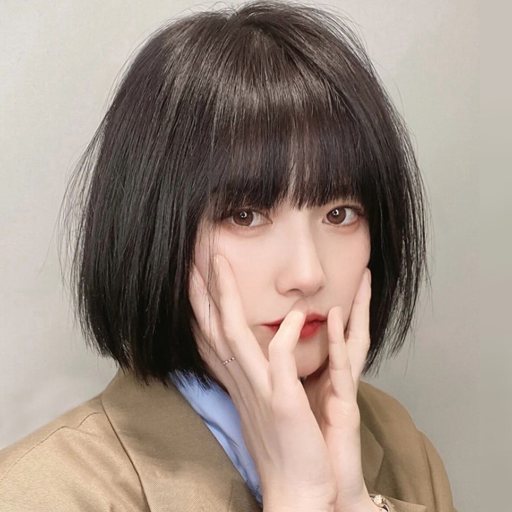 2、齐肩短发:整齐的刘海遮住大额头,发尾烫个小内扣,看起来清新、可爱,整个发型随意又自然。