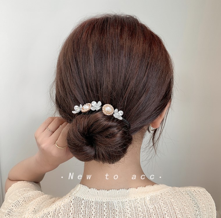步骤三:将所有的头发收拢,用皮筋扎好,并用发饰点缀。