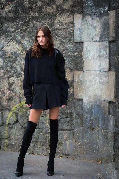 如果腿比较粗的MM想穿短裤呢,可以选择带一点高跟的靴子,既保暖又能遮住自己的腿,露出腿部最纤细的部分。如果腿型比较好看的MM,那只要再配上一双长筒皮靴,一双大长腿立马就秀出来了。
