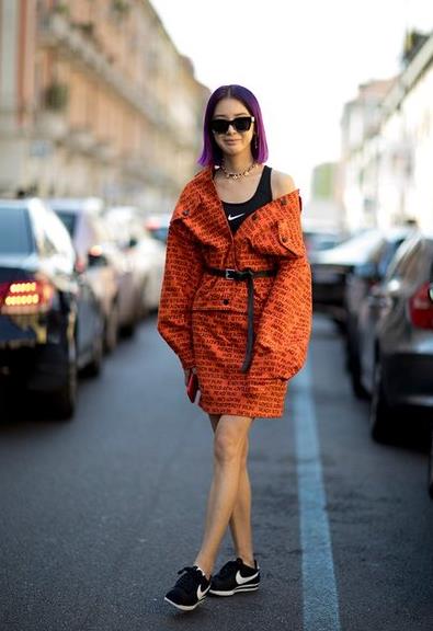 也可以解开两个扣子,尤其是身材比较好的女生更适合这样穿,显得整个人很性感也很自信。