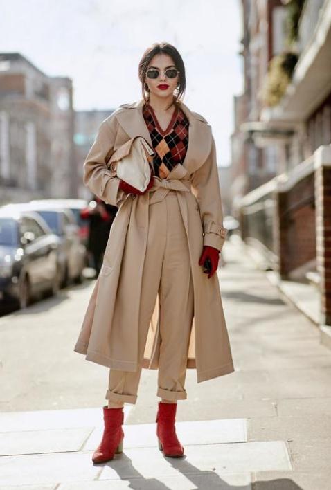 经典的卡其色风衣是相当百搭,与针织衫、九分裤搭配在一起完全没有违和感,还能突出酷酷的感觉,十分抢镜。另外,牛仔裤和黑色麂皮长靴搭配卡其色风衣也非常好看,让MM变得干练知性。