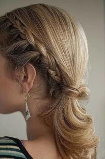 3. 女生侧梳蜈蚣辫编发发型 蜈蚣辫只是这款发型中,做出来的一部分,重点还是给头发做成蜈蚣辫之后,发尾简单固定起来的马尾辫款式。低扎的发型可以直接顺着头型偏分一下,编成三股编发。