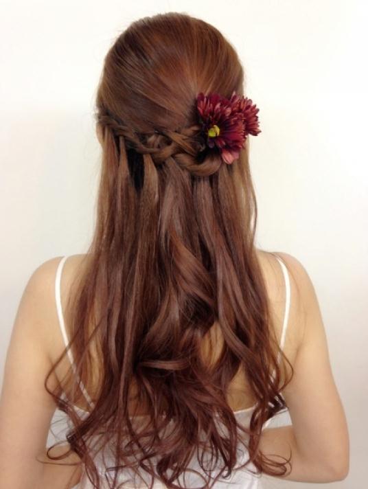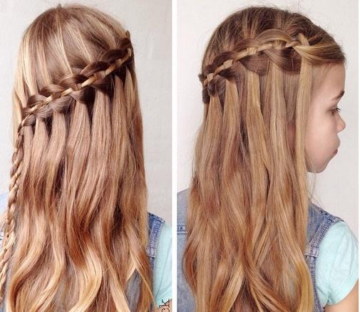 2. 女生编中长发瀑布辫发型 女生的编发发型,总是有着这样那样的设计,女生编中长发瀑布辫的发型,在发顶上给头发分成两边,蓬松的头发刚好梳在肩头后侧,长头发发顶上的弧线直接沿着曲线打理,发饰也给形象添形象。