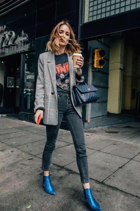 大家应该发现了,现在很流行穿西装外套,尤其是以黑色、白色和各种格子的西装外套居多,黑色西装外套内搭白色T恤,再到一条黑色牛仔裤,帅气、干练又不会太职业。