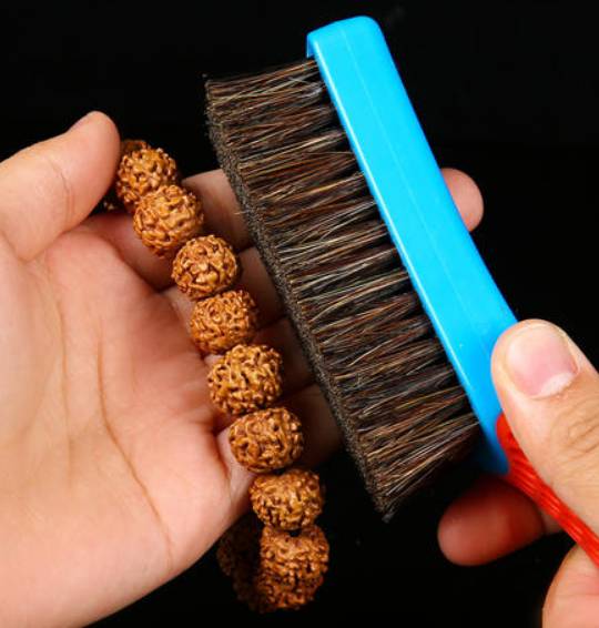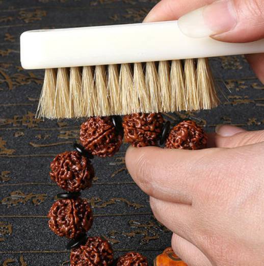 刷金刚菩提建议使用猪鬃刷,猪鬃刷的毛较硬,可用于金刚菩提抛光。若是前期对金刚菩提进行清理,可以用钢丝刷,钢丝刷能够清除残留的果肉、表面的灰尘和泥巴。后期盘玩金刚菩提则可以使用猪毛刷,可以清洁金刚菩提的沟槽,还可以给金刚菩提抛光除尘。