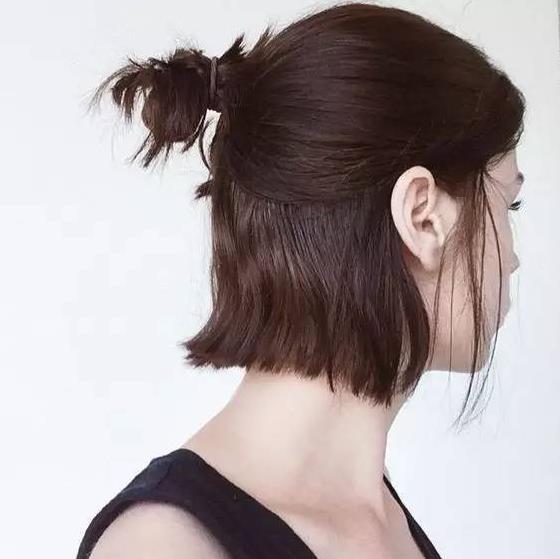 如果说长发的半丸子头很考验气质,那么短发版的就不一样咯,随便扎扎就很好看哦~ 你看,一不小心还引领了潮流~