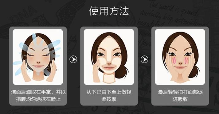 洁面后,使用爽肤水进行二次清洁,然后用滴管取适量的科颜氏淡斑精华于手心,然后借助指腹力量均匀的涂抹至整个面部。然后再按照从下向上、由内向外的顺序,轻轻按摩整个面部肌肤及颈部肌肤。最后再轻轻拍打整个面部及颈部,促进科颜氏美白淡斑精华的吸收即可。