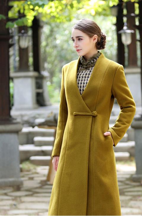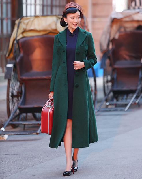 11. 水墨元素旗袍+长款复古羊绒大衣