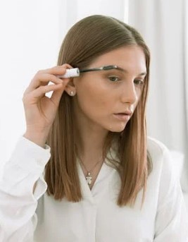 第三步眉毛,用眉刷蘸取眉粉,第一笔画在眉尾,然后向前填补,眉头晕染自然。