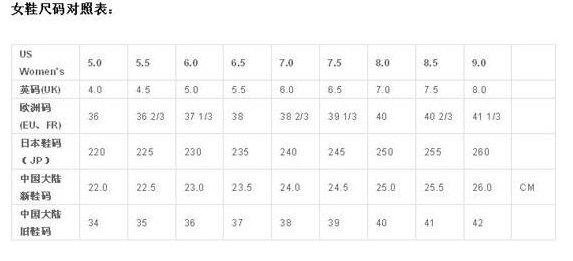 AJ1男女款鞋码对照表