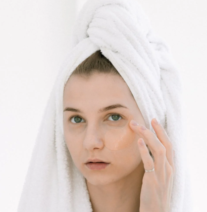 3、揭下后用指腹按摩眼周,帮助眼部吸收精华。