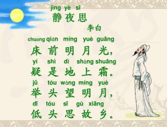地上霜指的是地上泛起了一层霜,说的是月光。《静夜思》是唐代诗人李白所作的一首五言古诗。此诗描写了秋日夜晚,诗人于屋内抬头望月的所感。诗中运用比喻、衬托等手法,表达客居思乡之情,语言清新朴素而韵味含蓄无穷,历来广为传诵。