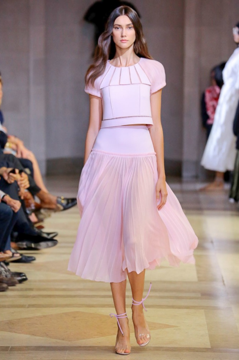 2. 粉色上衣+粉色阔腿裤+白色手包+粉色高跟鞋