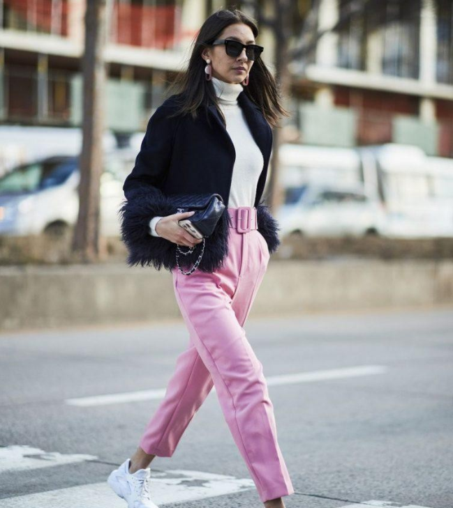 粉色搭配黑色会中和粉色的幼稚感,然整套搭配既拥有沉稳的感觉,但是又不会失去女性的柔美娇嫩。