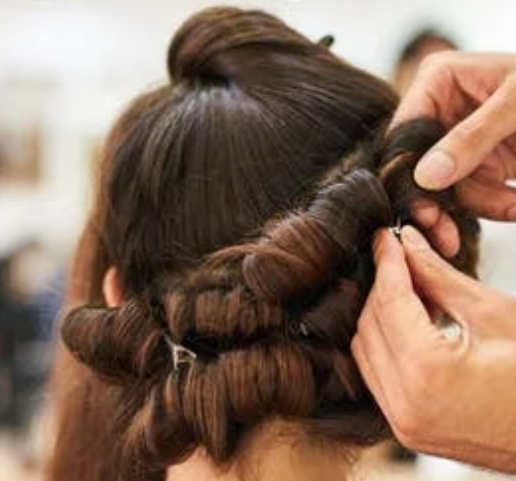 第六步:将最后就是将头发往内盘,用小夹子固定好,再戴上自己喜欢的发饰。