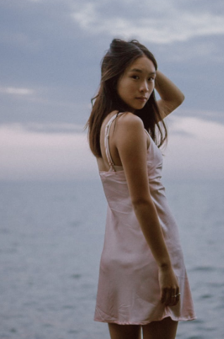 草莓型身材可以穿背带裤,背带裤选择下半身比较宽松的类型,增加下半身的围度,同时内搭V领的衣服,削弱肩宽,让身体整体的比例更加完美。