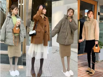 粉色的开叉半身裙搭配粉嫩的外套,脚下再穿一双白色的保暖鞋,甜美与气质双满分;黑色的半身裙搭配红色的毛衣,外面再披一件白色的外套,看起来就是一位小仙女啦!