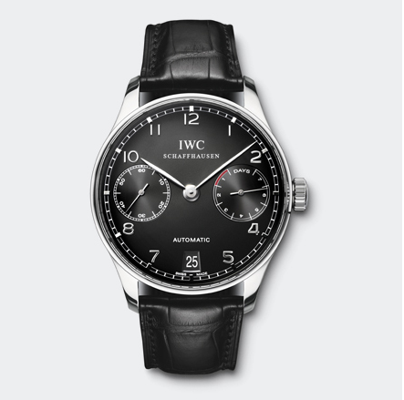 这款是经典的万国葡萄牙七日链腕表,腕表采用42.3毫米直径设计,精钢表壳打造,搭配蓝色鳄鱼皮表带。腕表内部搭载的为万国自产的cal.51011自动上链机芯,上满链可提供168小时的动力储备,也就是整整七天,这也是万国葡七叫法的由来。