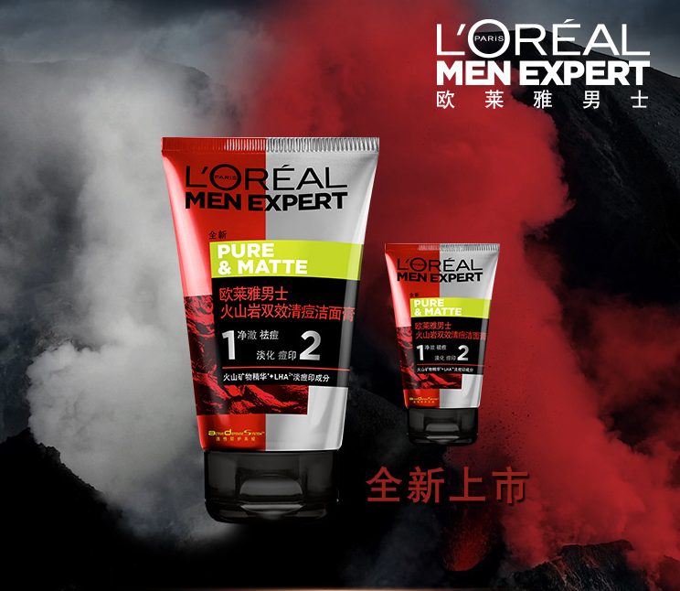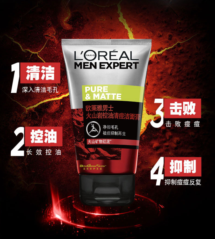 2. 欧莱雅(LOREAL) 男士火山岩控油清痘洁面膏