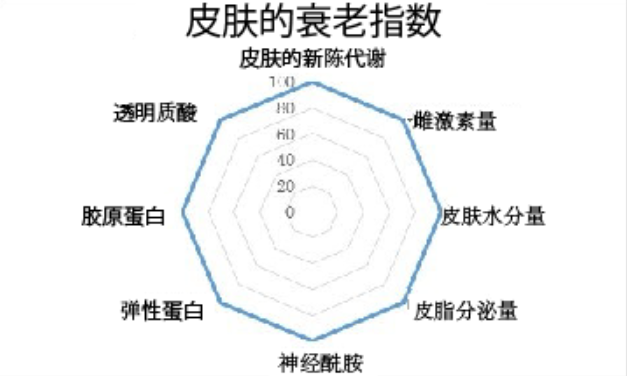 肤质也是由「新陈代谢周期」,「雌激素量」,「皮肤水分量」,「皮脂分泌量」,「神经酰胺量」「胶原蛋白量」、「弹性蛋白量」、「透明质酸量」这8个要素决定的。