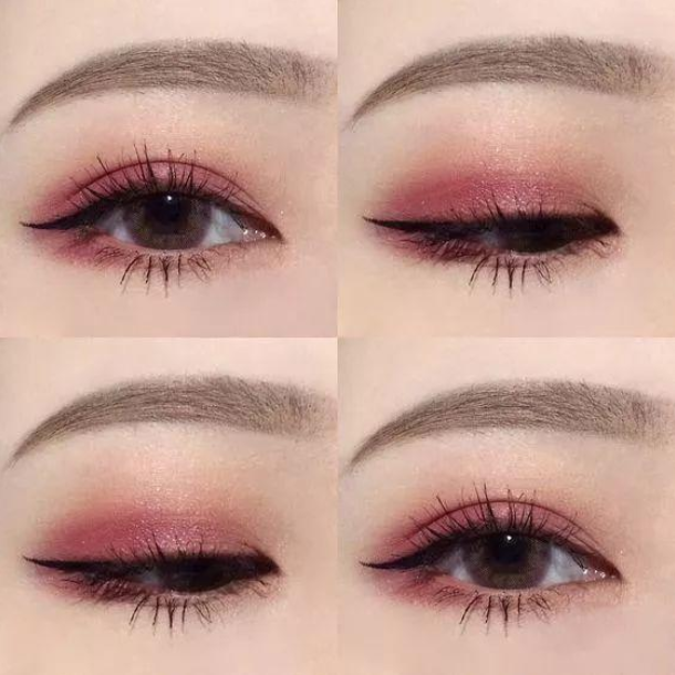 其实这款比上一款要深点,可使双眼更加深遂,还有变大双眼的作用,真是小眼的好福利啊!日常出行或者逛街都可,很百搭。1号依然是作眼眶打底用,2号就是加重上眼睑皱褶处的顏色。下眼尾也须要加重,此时就用的3号色。最后调亮用的4号色,不会很贵太亮,毕竟要营造深遂的妆容,这一顏色刚好。