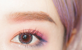 STEP 4:眼珠中间位置对应的下眼睑也要用红色眼影晕染,眼尾后半段使用棕色眼影,上眼睑的眼尾处也要加强晕染。