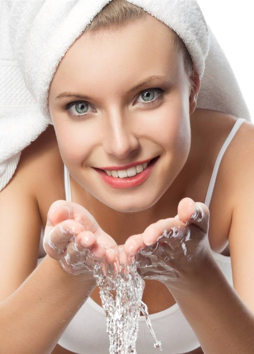 2. 将不含收缩成分的爽肤水浸透化妆棉,然后从下往上擦脸,目的是清洁及滋润肌肤。