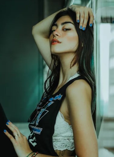 9、破洞t恤最终效果如下图,格子状的T恤,十分适合搭配彩色的胸罩。