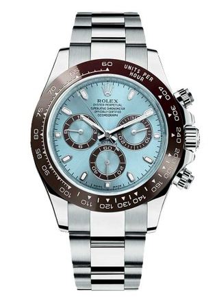 劳力士迪通拿算是表款中价格相对较高的。宇宙计型迪通拿诞生于1963年,专为满足专业耐力赛车手的计时需要而设计。配有可靠的时速计刻度外圈,最高测速可达时速400公里、英里。这款标志性腕表与赛车世界所追求的性能与卓越表现如出一辙、傲视同侪。