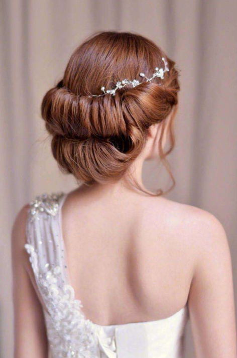 这个盘发很日常,也很适合要参加婚礼要做伴娘的女生,绑一个马尾辫,两鬓留出小许头发,分别扎好,挖个洞反过来,接着从发尾往上卷,形成一个丸子,用夹子固定,最后拉松发型,如果你是走轻熟女的风格,这个发型再适合不过了。