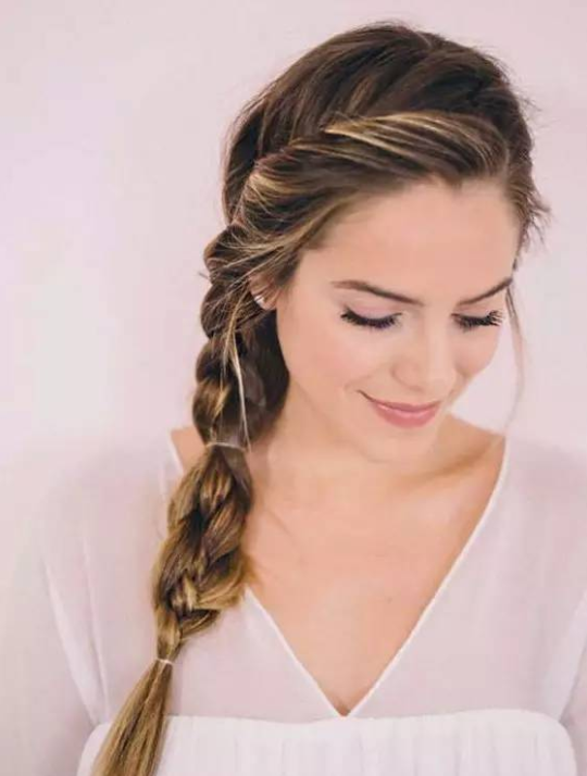 这款头发跟上面那款有点像,只不过是底盘发,而且是靠右边,方法是相同的,只不过最后不是用皮筋固定,而是用夹子固定,想要青春一点,可以搭配一个发饰。