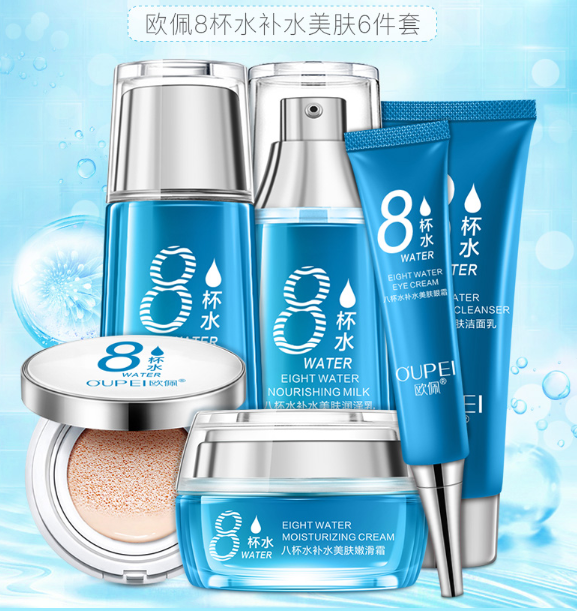2. 欧佩八杯水套装护肤礼盒女士 (眼霜+洗面奶+爽肤水+面霜+乳液+bb霜)六件套