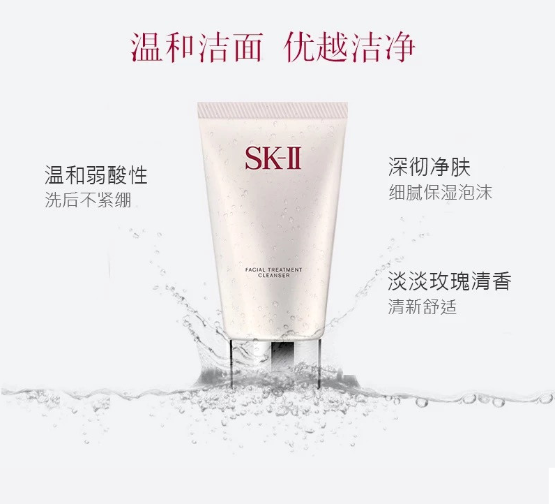 温和洁面,优越洗净力与肌肤pH值相当的弱酸性配方﹐蕴含SK-II PiteraTM、水解亚麻子提取物及保湿成分。温和而具有优越洁净力,其丰富而幼细的保湿泡沫可把污垢包围,然后从肌肤带走,给予您细腻通透照人的肌肤。