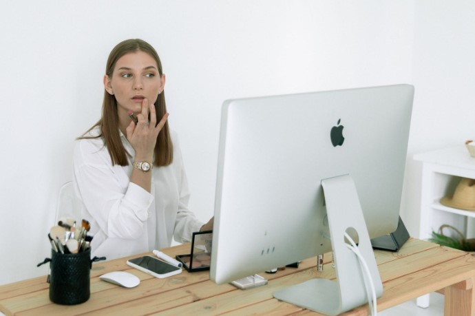 a)少女妆效:少女妆效是指元气满满的减龄妆,包括用珠光感口红打造的“果冻唇”、用西柚色、草莓色打造的“果汁唇”、配合遮瑕打造的“咬唇妆”等,这样的唇妆主要要求光泽感和较为日常的颜色,不要求饱和度和显色度。如果想要少女感的妆效,只要强调气色就好,适合选择橙色、珊瑚色、粉色等颜色较浅的口红。少女感的嘴唇是水润饱满的,适合选择滋润型口红,如果配合珠光适合挑选白色的细闪,只强调光泽度而不能夸张。