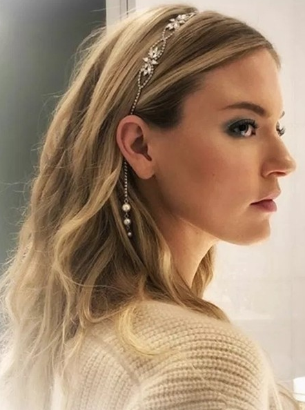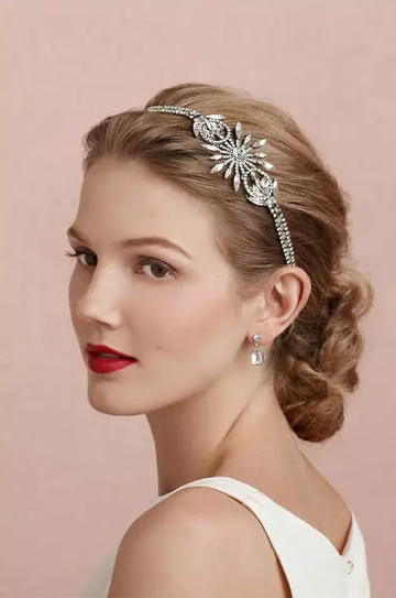 像一些带着小珍珠或者小水钻的发箍就很合适,搭配着白色的纱裙,比较有女神气质。