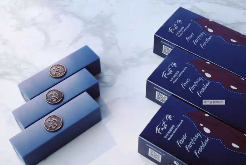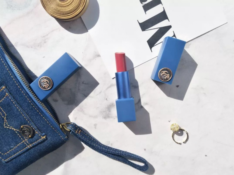 打开后就能看到躺在礼盒中的口红,牛仔雾蓝色的外壳,摩登感十足,还透露着一丝丝的野性和洒脱,真的十分有个性呢~~与之相配的还有一个牛仔上的古铜纽扣专属浮雕logo,既有做旧光泽感,又十分有质感呢!
